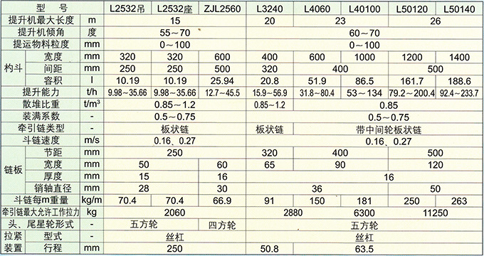 注:ZJL型為間斷斗子,即每兩個鏈節(jié)有一個斗子。和連接斗子(每一個鏈節(jié)有一個斗子)相比,不易將上個斗子的水滴到下個斗子中去,與L2532相比,提升能力相當(dāng)。對于小型選煤廠,工藝流程比較簡單,撈出的物料當(dāng)沒有篩機再次脫水時,選用更為合適。